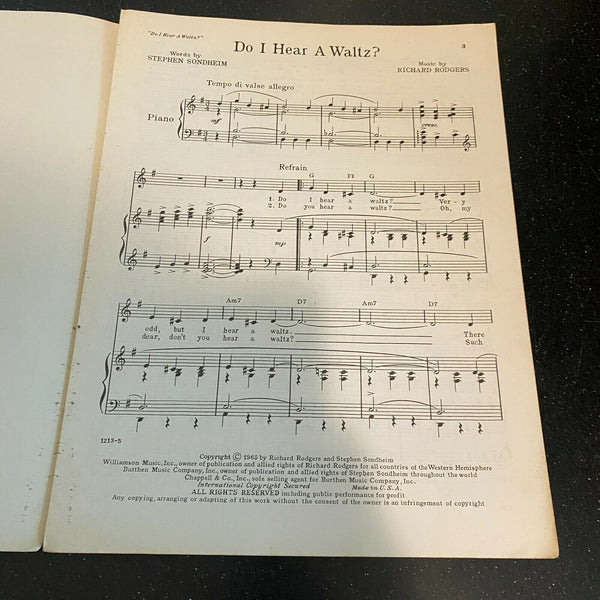Do I Hear a Waltz? Sheet Music Richard Rodgers Stephen Sondheim 1965 Hammerstein